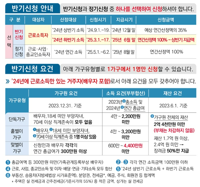 반기 신청은 근로소득자만 가능하며, 빠르게 일부 금액을 받을 수 있음