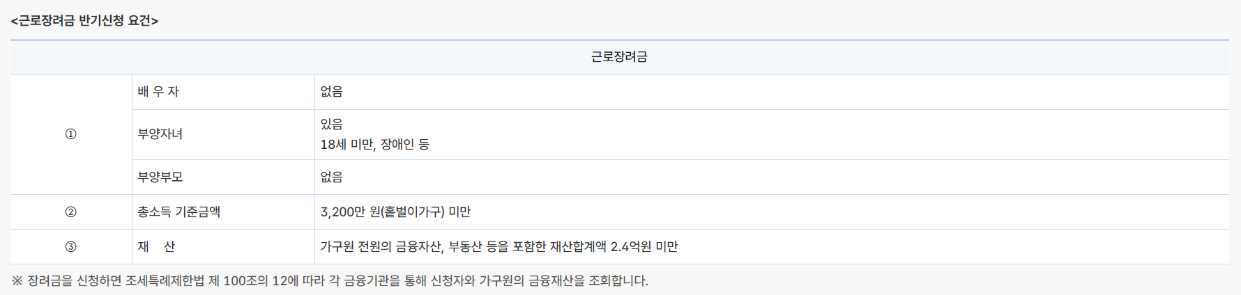 - 장려금을 신청하면 국세청에서 가구원의 금융·부동산 조회