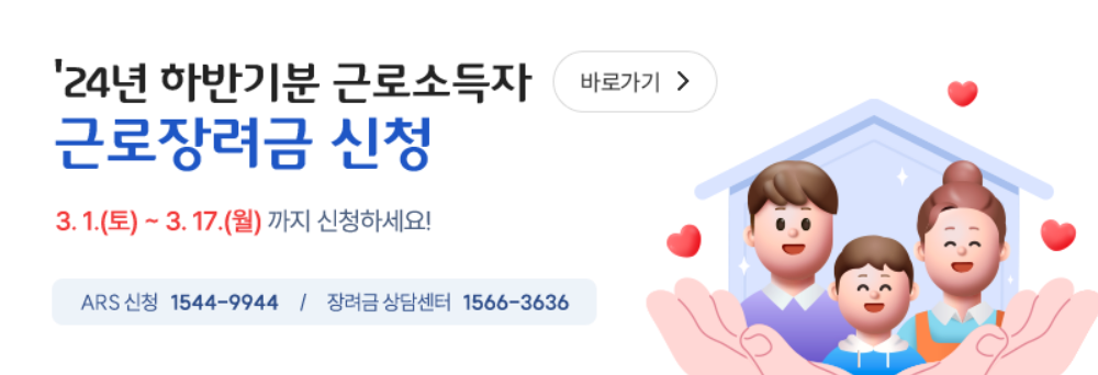 근로장려금 신청은 홈택스 및 ARS(전화) 를 통해 가능합니다.